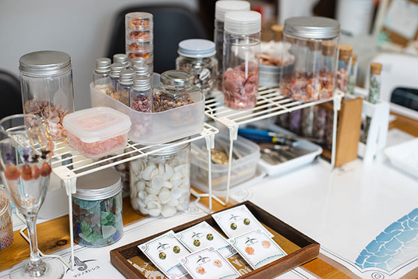 シュフロアではコーヒーを飲みながらゆっくりと。ドリンクはお持ち帰りもできます。 ハンドメイドアクセサリーやオリジナル雑貨も販売しております。 また、ワークショップ等を開催していただくフロアとしてもご利用いただけます。初めての教室開催などで不安な方もお気軽にご相談ください♪